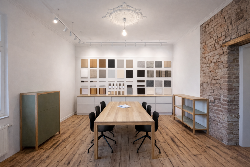DER SHOWROOM BIETET DIE MÖGLICHKEIT, MATERIALIEN, OBERFLÄCHEN UND DETAILS DIREKT ZU ERLEBEN. SO WIRD AUS EINER IDEE EIN KONKRETES BILD – UND AUS EINEM ENTWURF EIN MÖBEL, DAS PERFEKT ZUM RAUM PASST.